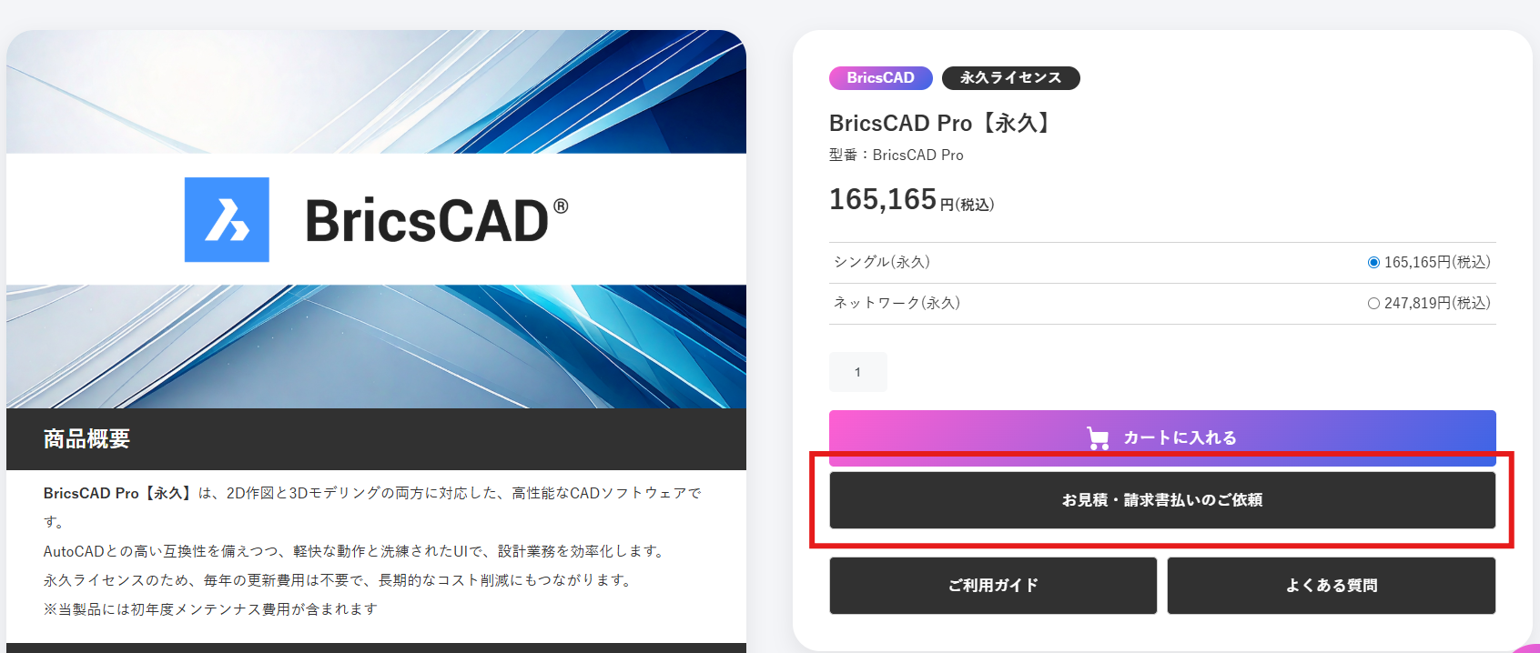 ご希望の場合は、ご購入前に各製品詳細ページの「お見積・請求書払いのご依頼」ボタンよりご連絡ください。